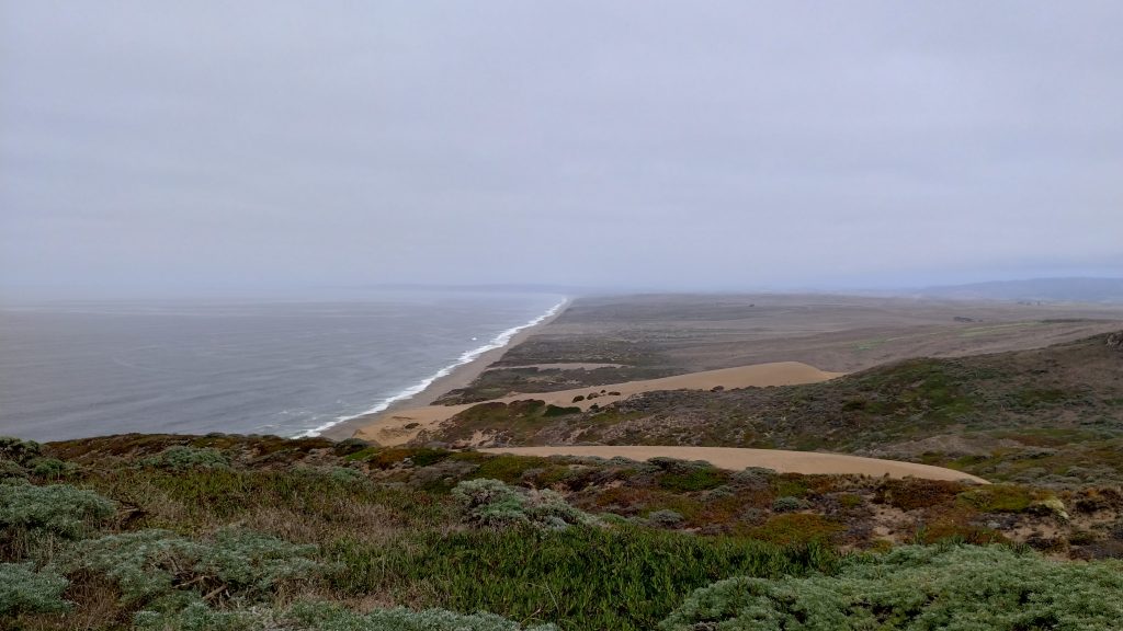 Point Reyes is a neck of land (well, really two necks of land) that stick out into the coast north and west of San Francisco. It’s actually formed by the San Andreas Fault cleaving the land out into the sea, and forming Tomales Bay as a result.