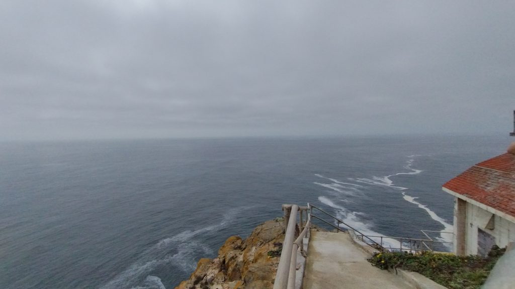 It’s gray. Depressingly so. It smells like birdshit. They have a reproduction foghorn that occasionally blares an insufferable, low roar. Meteorlogical data kept by the lighthouse. Indicates that this is the foggiest location in the lower 48, with something like 280+ days of fog per year.