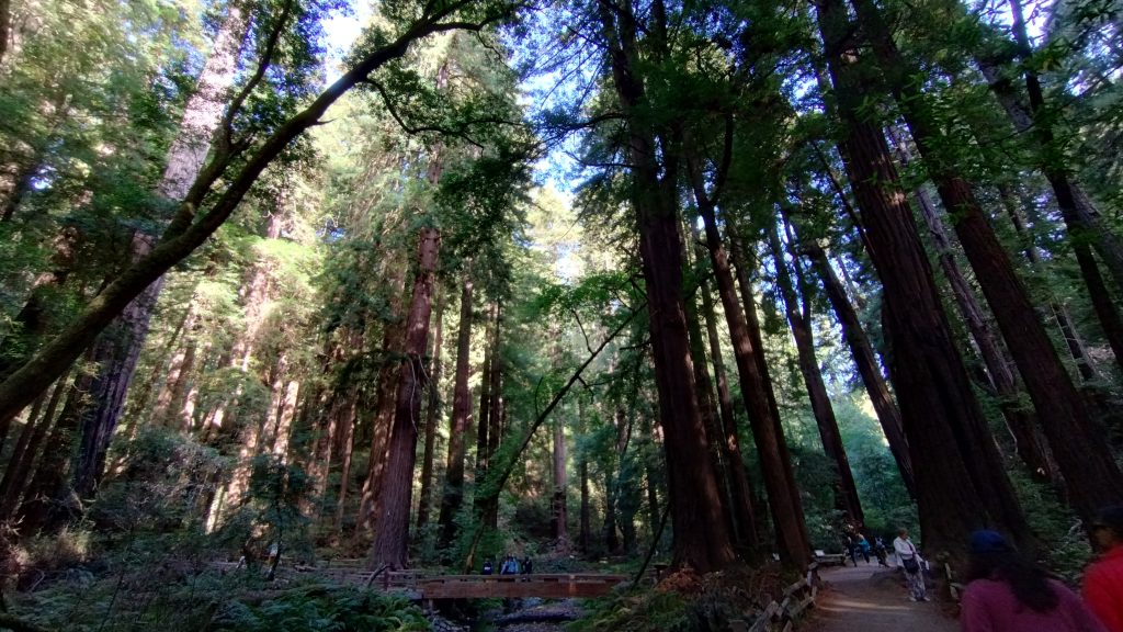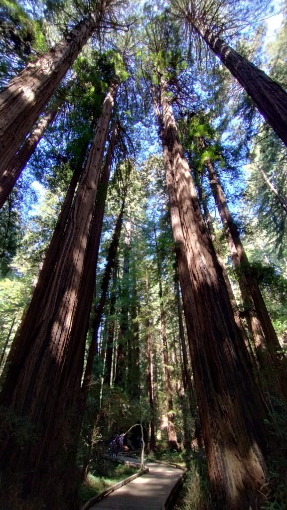 On strong instruction recommendation from my dear friends Meredith and Sean, I went to Muir Woods, which is an old-growth redwood grove opposite from San Francisco. The forest here is absolutely Triassic; it’s cool and misty and covered in ferns. Trees higher than I’ve ever seen tower over you in every direction, yet somehow don’t block out all of the sunlight! Perfect little beams shine down all over, ignited by flecks of mist and pollen and mites: