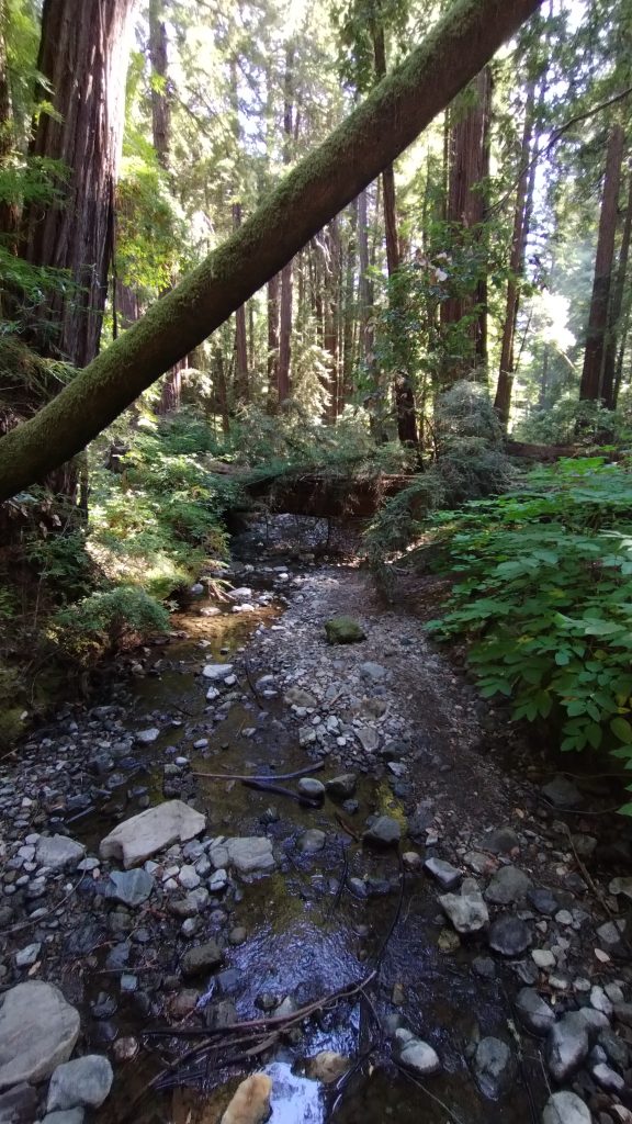 One of the cooler things I learned while here is that apparently, established redwoods have interconnected root systems that distribute resources throughout the grove. Individual trees located hundreds of yards up the hill and away from the central creek have been found to contain selenium and phosphorous, the only source of which is from salmon who swim upstream from the sea and die, leaving their nutrients in the creekbed. Trees closer to the creek grow their roots specifically into the bed in a way that is more likely to catch salmon corpses (and provide pockets of still water for spawning) and absorb their nutrients.