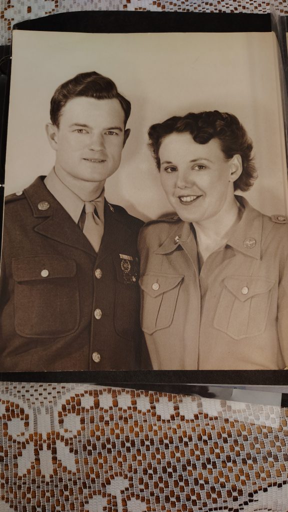 And here’s a photo of my Grandpa and Grandma (Marion Lee, nee Barber), when they met in Deming, New Mexico during WWII 🙂 Grandpa was in the Army Air Corps (the Air Force hadn’t been created yet) and Grandma was in the Women’s Army Corps.